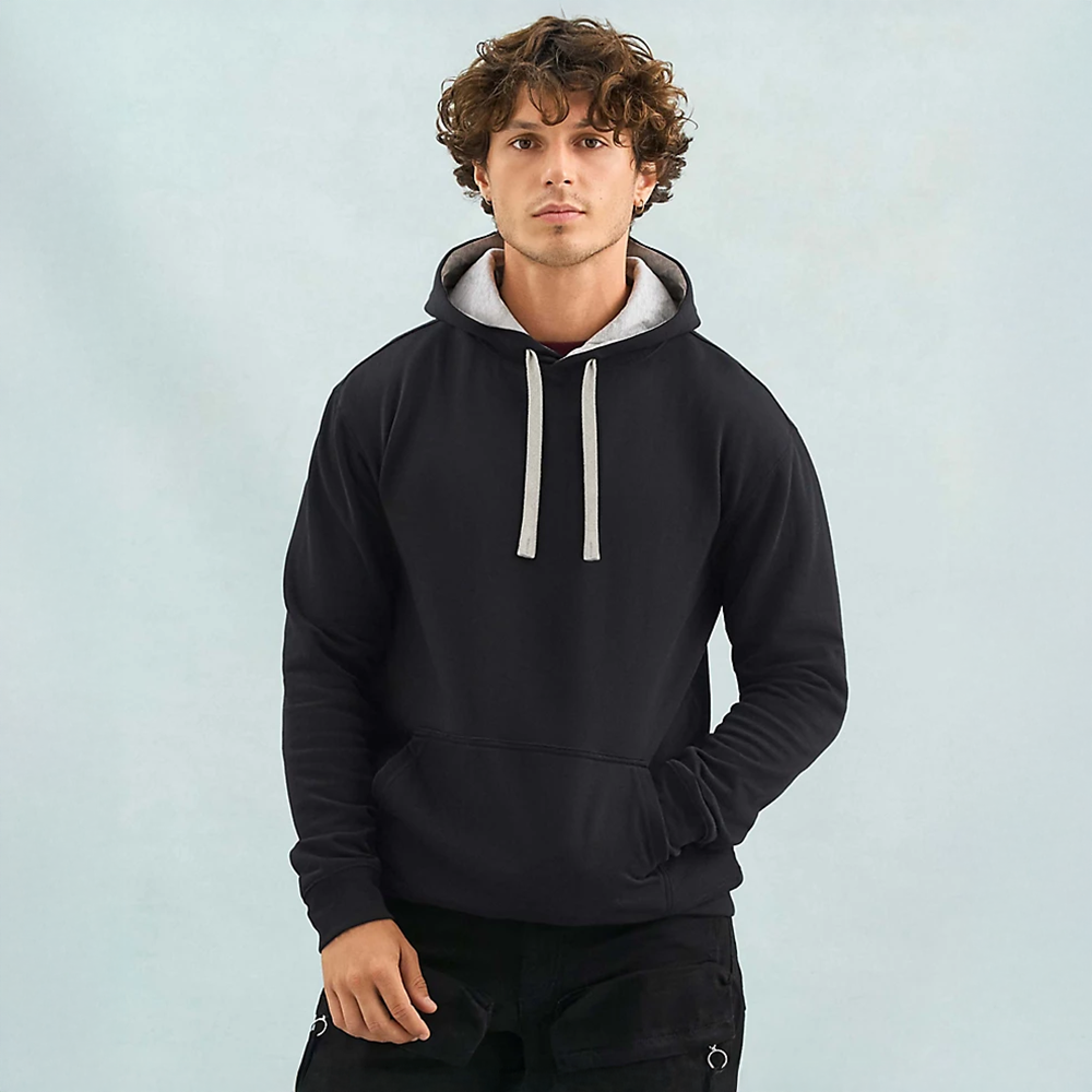 Style & Finitions : Capuche doublée en jersey contrasté avec lacets assortis pour un look moderne. Poche kangourou classique.